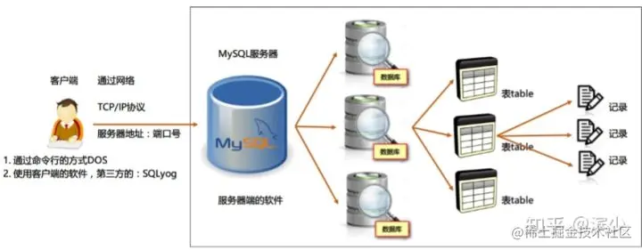 一个数据库服务器包含多个库一个数据库包含多张表 一张表包含多条记录