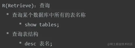 - Data Query Language(DQL 数据查询语言),如:对表中的查询操作
