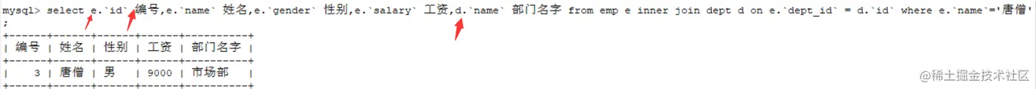 从这里我们发现取别名用的as是可以省略的,并且表名可以写首字母即可。