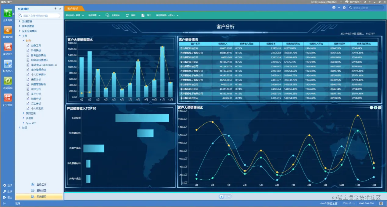 ERP在国内信息化领域起步较早,在当时大多数软件产品都是以客户端/服务端的CS架构形式应用,大部分ERP系统也都是集中在数据收集和流程审批的功能实现上,缺少数据分析方面的功能。