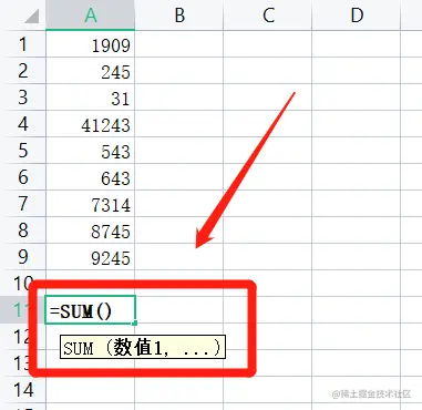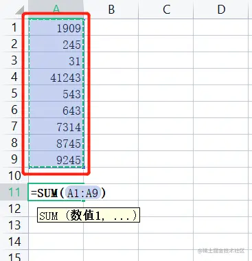 步骤一: 选中需要求和的数据。