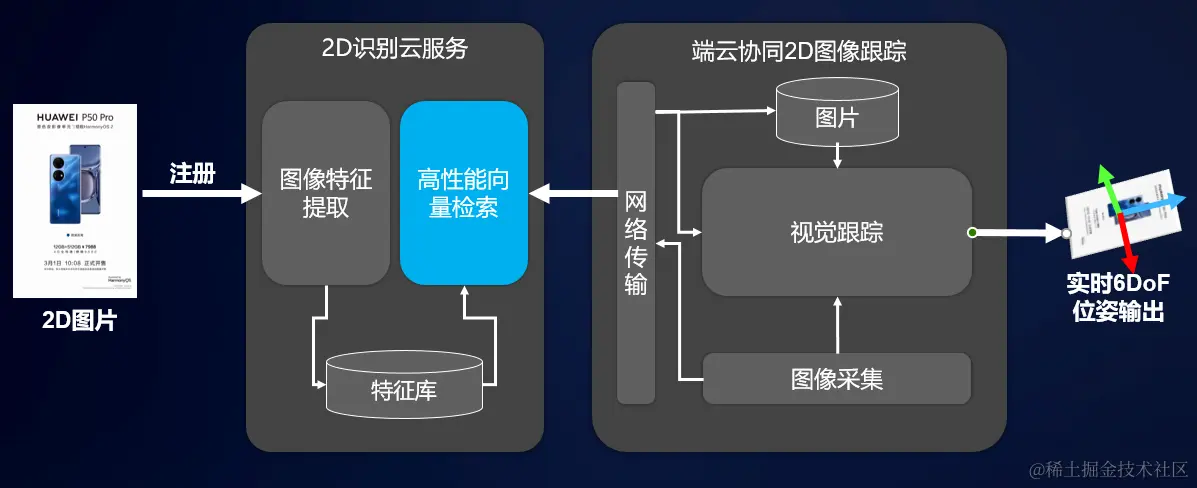 在提升云端服务的响应速度方面,端云协同2D图像跟踪技术利用硬件平台加速,开发了软硬协同的高性能向量检索引擎,实现海量特征下的毫秒级检索响应。