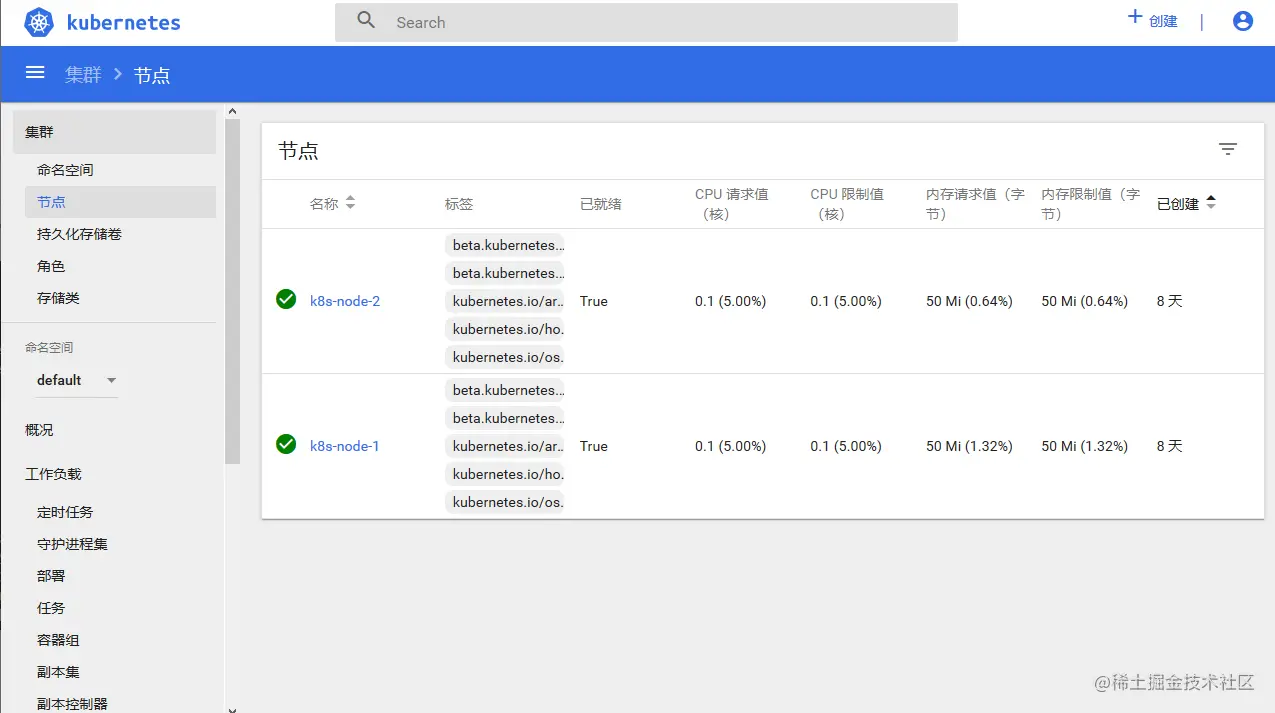 Node 节点可以在运行期间动态增加到 K8S 集群中,前提是这个节点上已经正确安装、配置和启动了上述关键组件。在默认情况下 kubelet 会向 Master 注册自己,一旦 Node 被纳入集群管理范围,kubelet 就会定时向 Master 节点汇报自身的情况,例如操作系统、Docker 版本、机器的 CPU 和内存情况,以及之前有哪些 Pod 在运行等,这样 Master 可以获知每个 Node 的资源使用情况,并实现高效均衡的资源调度策略。而某个 Node 超过指定时间不上报信息时,会被 Master 判定为“失联”,Node 的状态被标记为不可用(Not Ready),随后 Master 会触发“工作负载大转移”的自动流程。