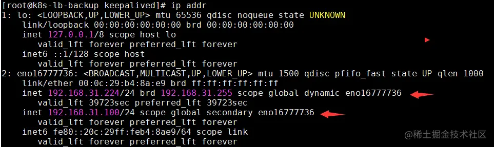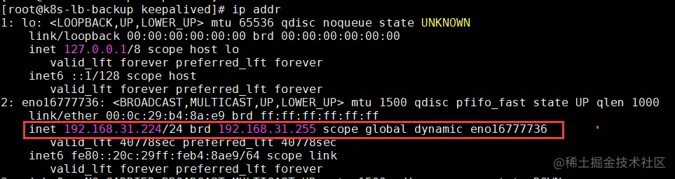 keepalived 已经将VIP附加到MASTER所在的网卡上