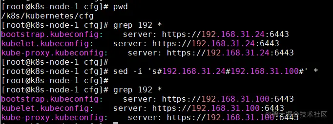 ① 修改 node 节点的配置文件中连接 k8s-master 的IP为VIP