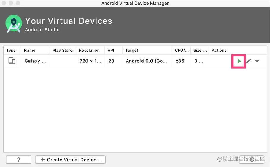4、点击 Creat Virtual Device