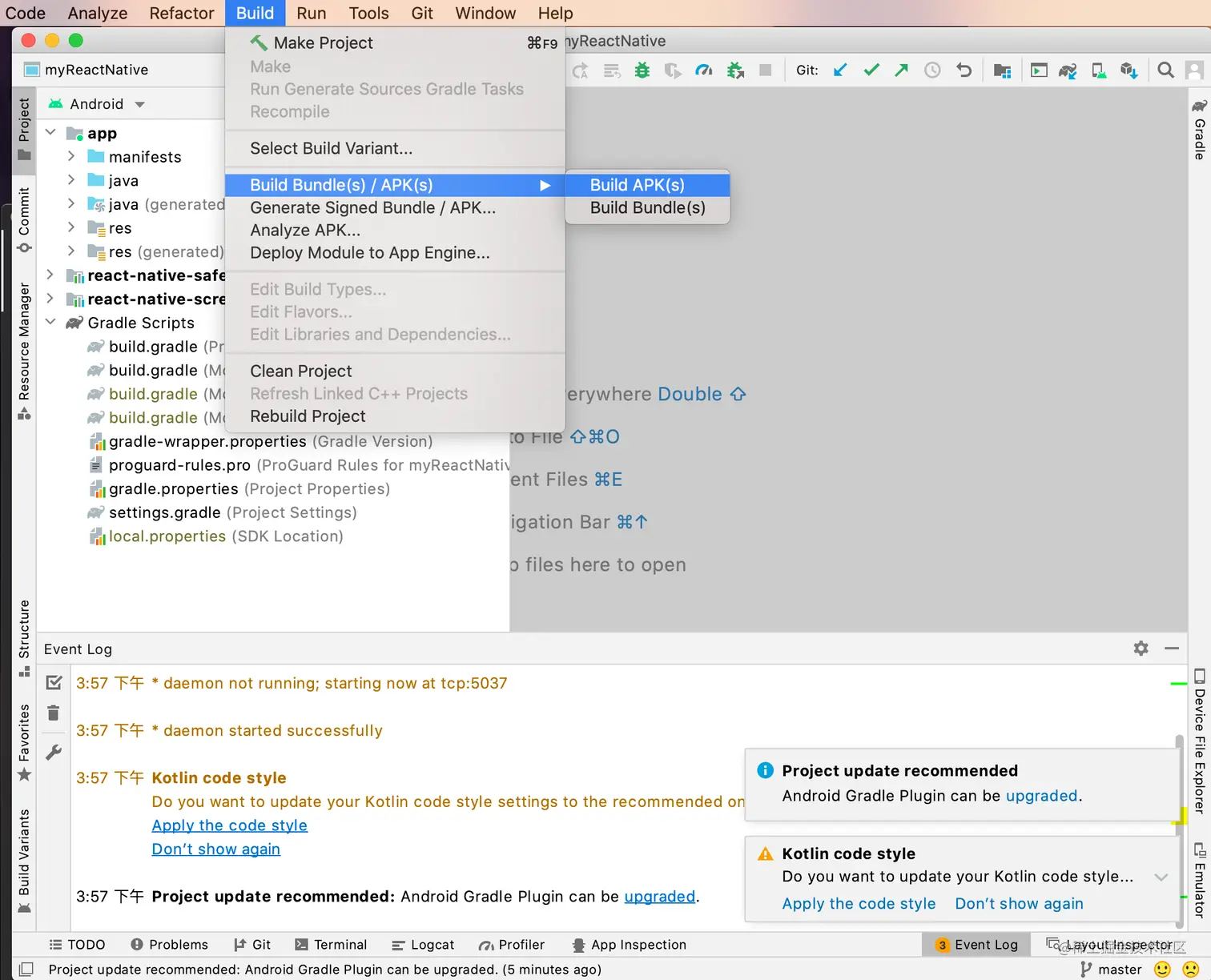 用 React Native 官方脚手架生成的项目目录是这样的: