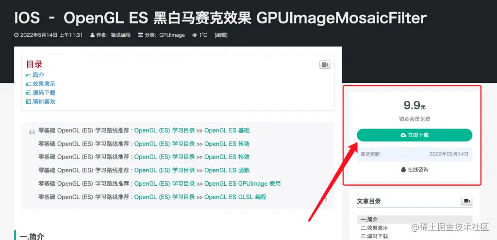 OpenGL ES Demo 下载地址 : [IOS – OpenGL ES 黑白马赛克效果 GPUImageMosaicFilter]!(www.codersrc.com/archives/16…)