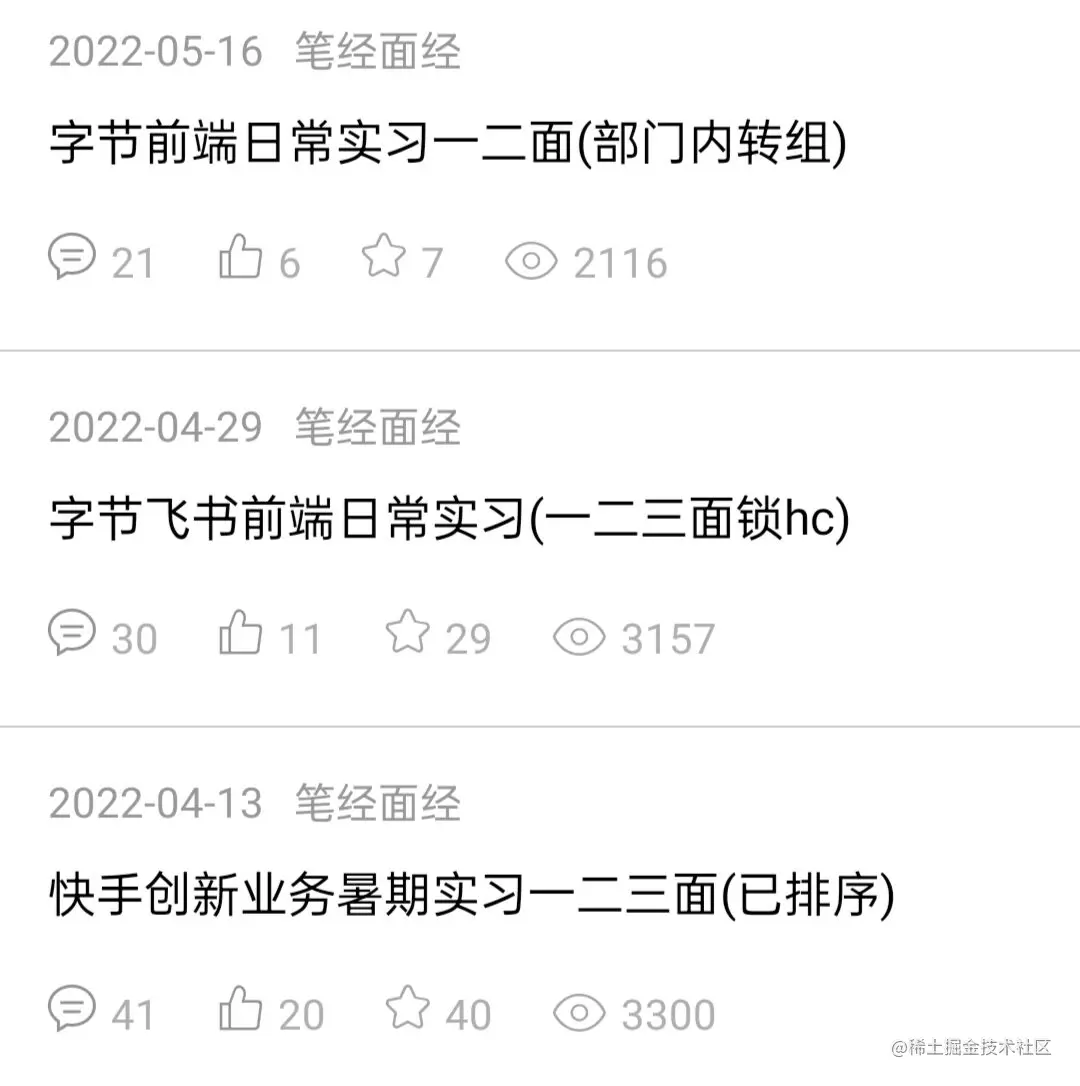 - 暑期实习会考察mid难度算法和框架深度源码,字节日常(前端)算法难度小,几乎不问框架源码,侧重于基础知识点考察,比想象中要简单很多很多