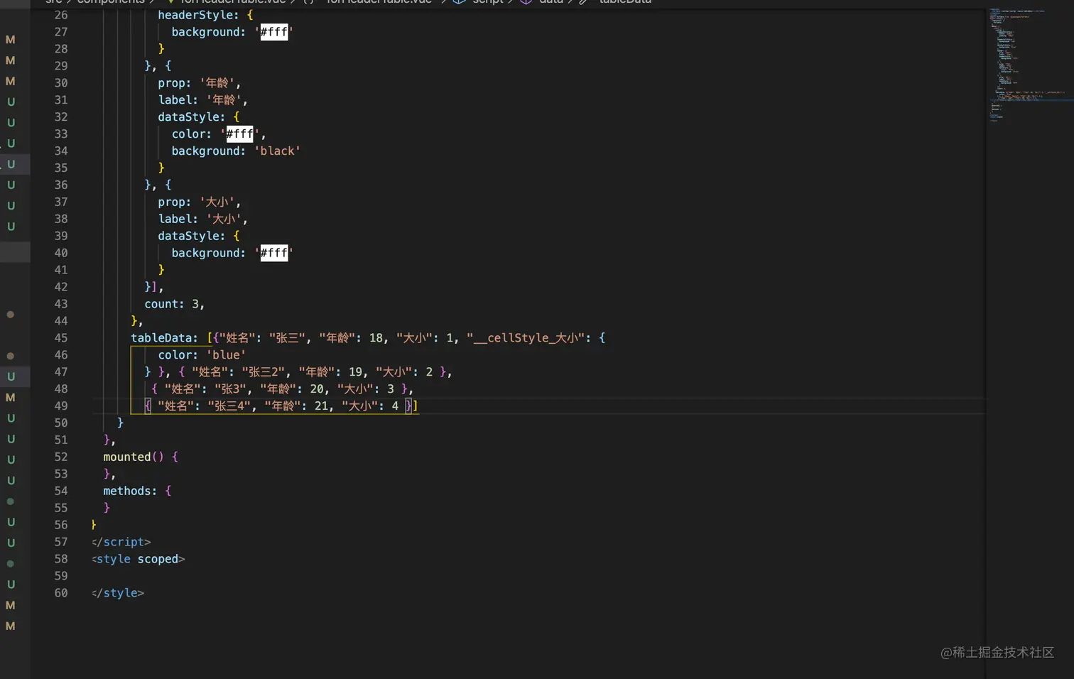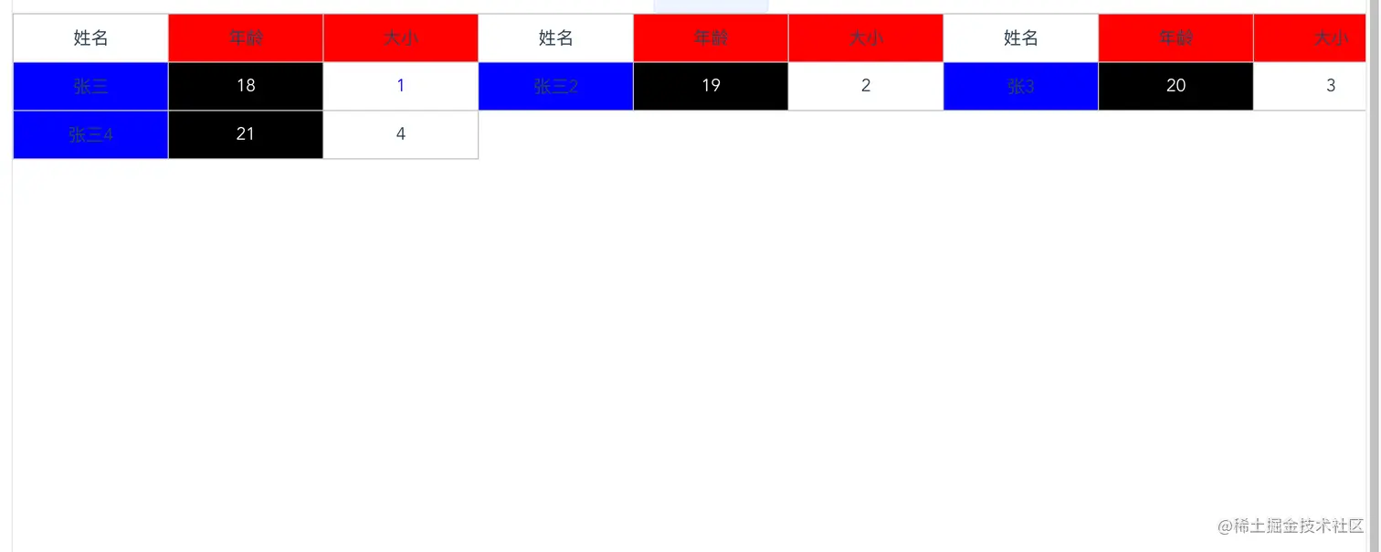 实现表头循环的表格组件 lookmountain 2022-05-25 223 阅读1分钟 可配置循环几次表头:count 表头可配置:header 单元格样式可配置 commonCellStyle: 单元格公用样式 headerCellStyle:表头单元格样式 dataCellStyle:数据单元格样式 在数据行(row)中也可以配置单元格样式:__cellStyle_${ prop} 封装组件forTable 如何使用
