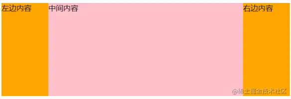 注意这里的 DOM 结构,不是我们想象那样的左中右结构,而是左右中结构,主要是给左右设置了浮动之后,就会脱离文档流,在最后是正常的文档流就很容易使用 margin 来控制。