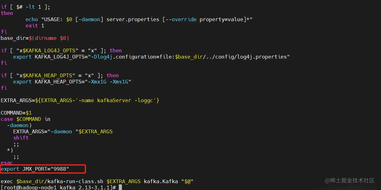 # 在kafka-server-start.sh文件中添加export JMX_PORT="9988",端口自定义就行