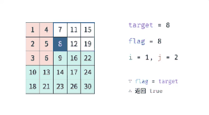 * 依次遍历二维数组的每一行和每一列。如果找到一个元素等于目标值,则返回 true。