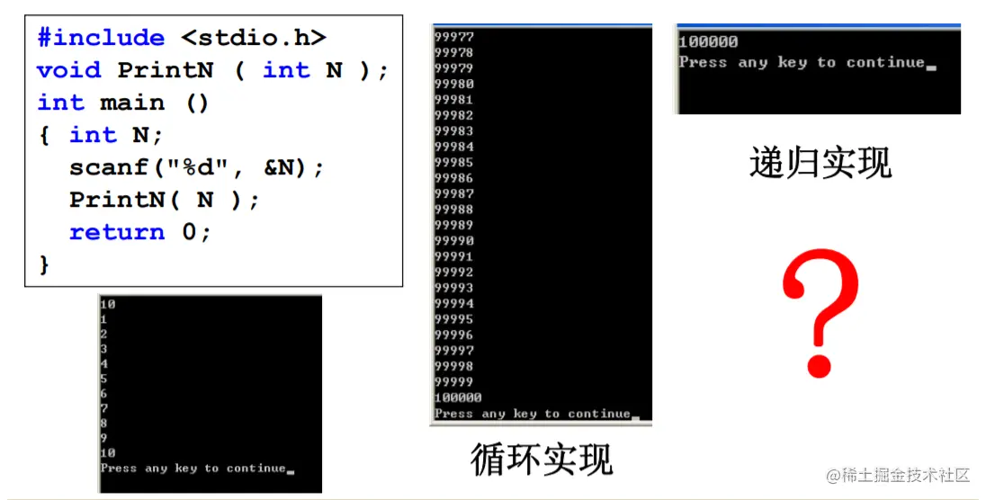 例题:写程序实现一个函数PrintN,使得传入一个正整数为N的参数后,能顺序打印从1到N的全部正整数。
