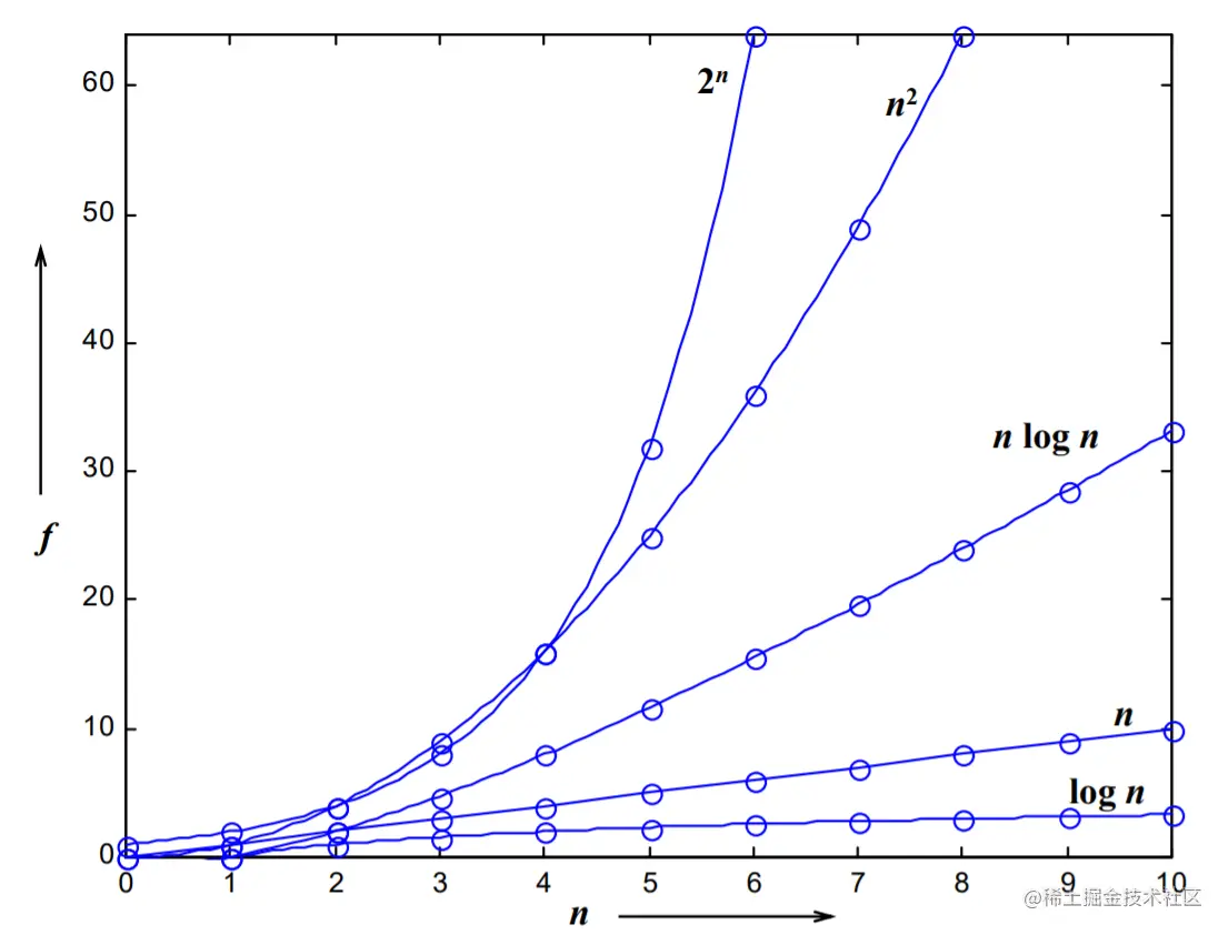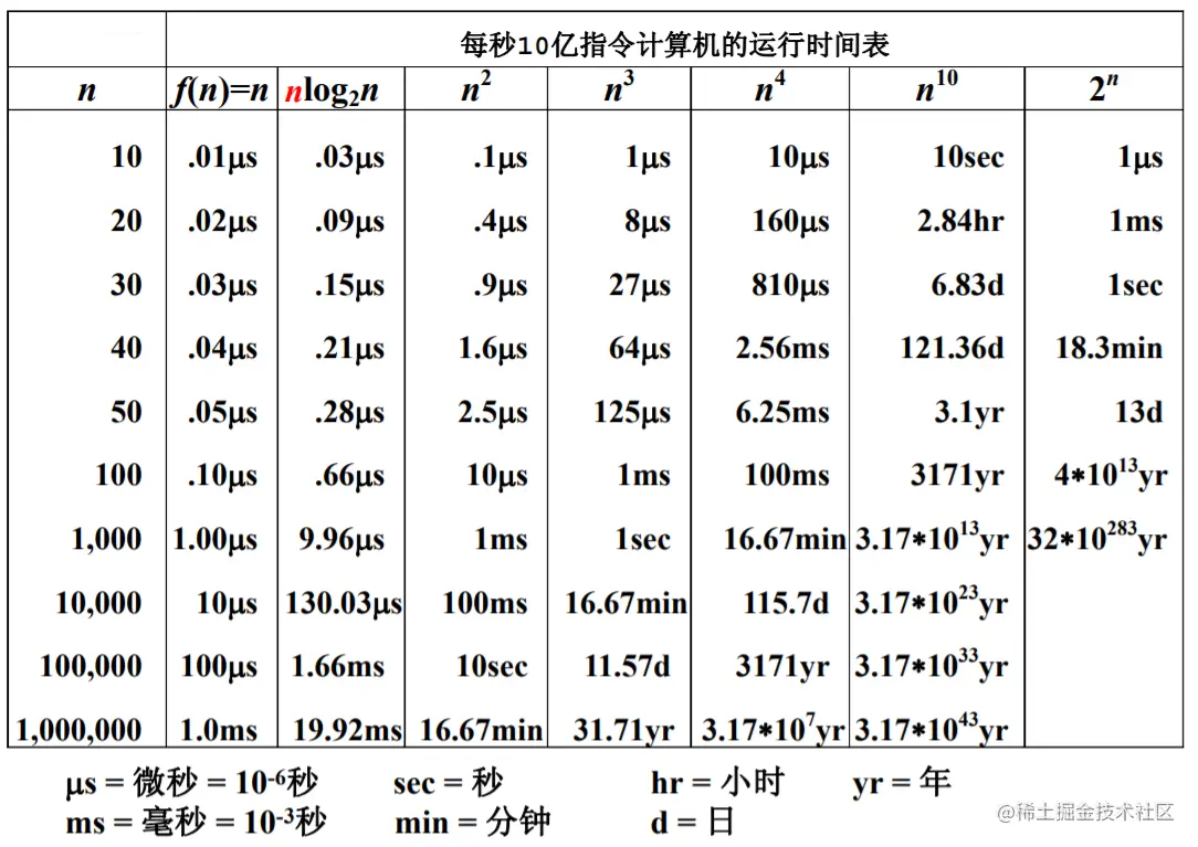 - 时间复杂度T(n)—— 根据算法写成的程序在执行时耗费时间的长度。这个长度往往也与输入数据的规模有关。时间复杂度过高的低效算法可能导致我们在有生之年都等不到运行结果。