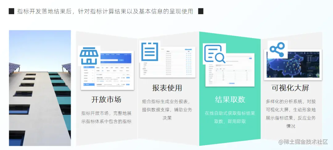 针对指标结果,提供一套能将指标和上层应用结合起来的输出方式,发挥数据指标最大的价值
