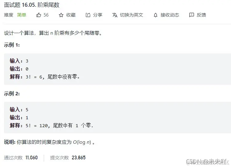 力扣面试16.05.阶乘尾数