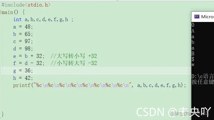 大写转小写 +32 ,小写转大写 -32。