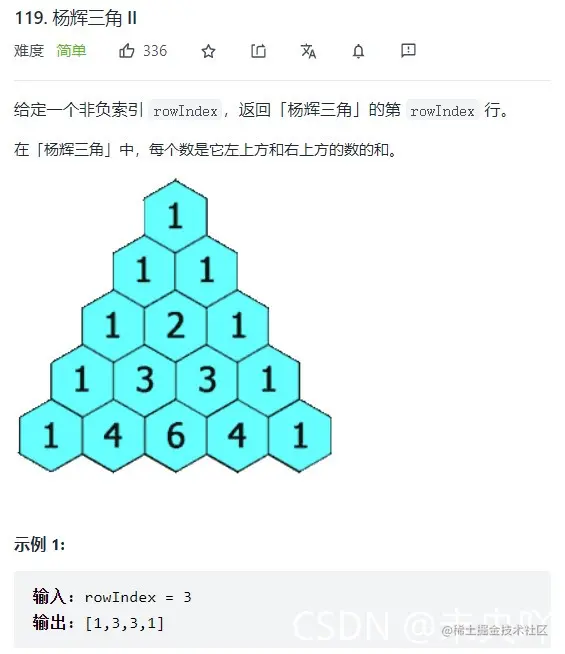 如果可以理解杨辉三角Ⅰ,这道题也并没有难点了。理解以下这个即可以了