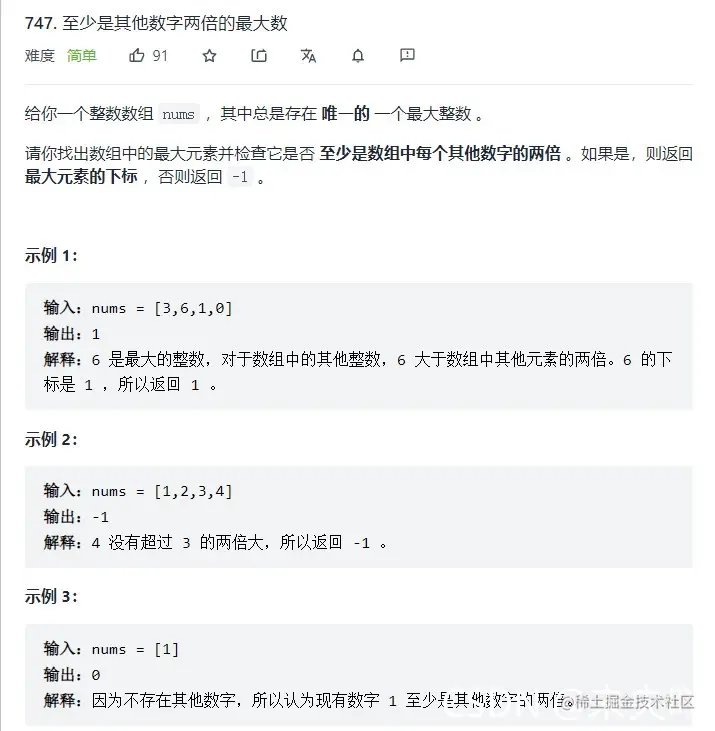 747.至少是其他数字两倍的最大数