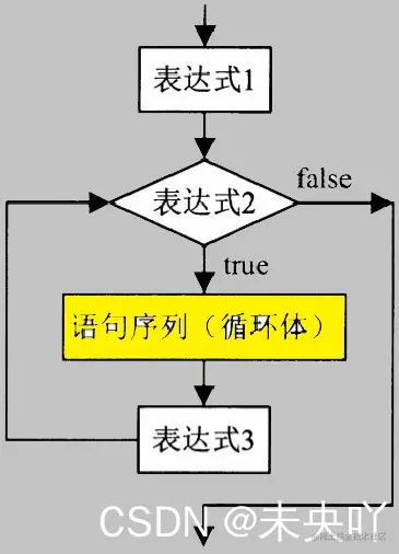 - 执行完循环体后再执行“表达式3”。