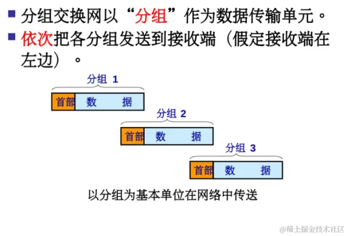 分组交换则采用存储转发技术。 在发送端,先把较长的报文划分成较短的、固定长度的数据段。