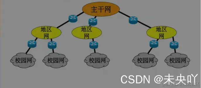 建成了三级结构的互联网;它是一个三级计算机网络,分为主干网,地区网,校园网(或企业网)。