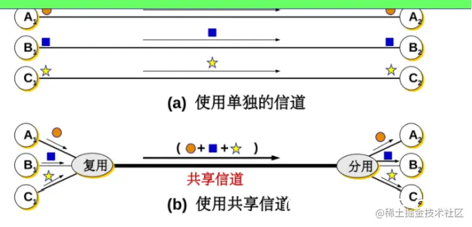 它允许用户使用一个共享信道进行通信,降低成本,提高利用率。
