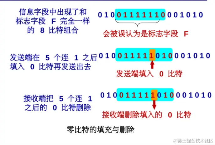 接收端对帧的比特流进行扫描。每当发现5个连续1时,就把这5个连续1后的一个0删除