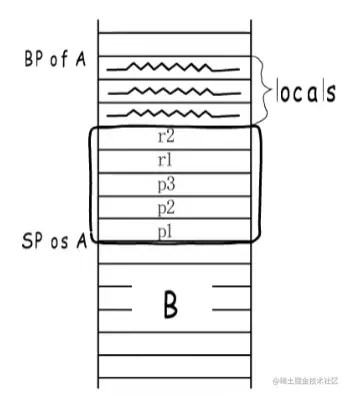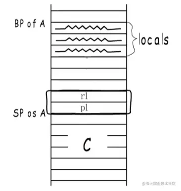 这时轮到调用C了,参数和返回值只会占用下面的一部分空间,因为这样方便sp+offset寻址