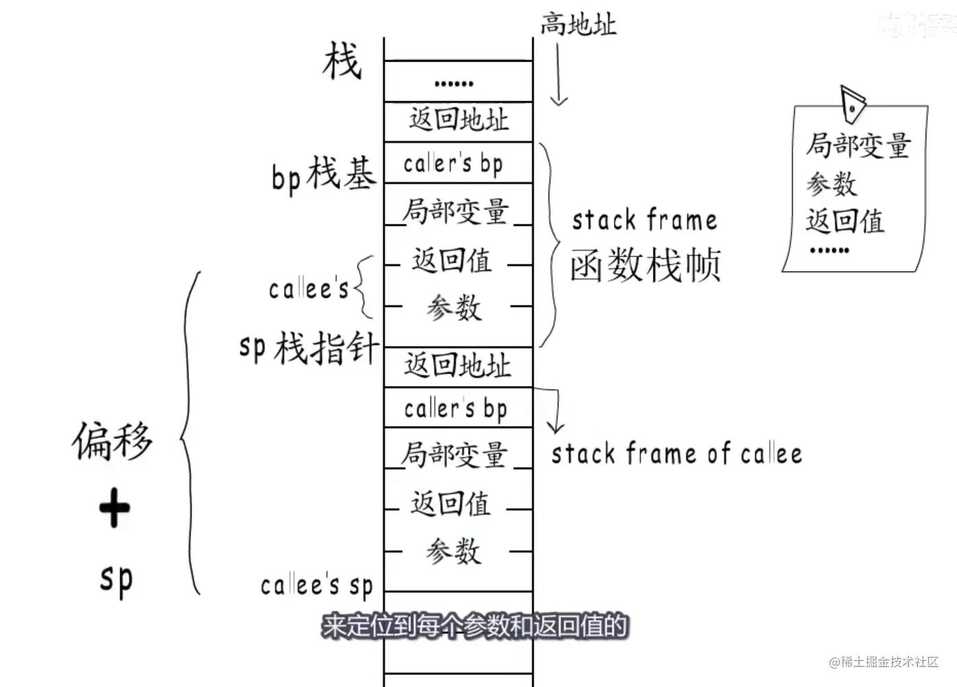 然后根据栈指针sp+偏移offset的相对寻址方式使用函数栈帧