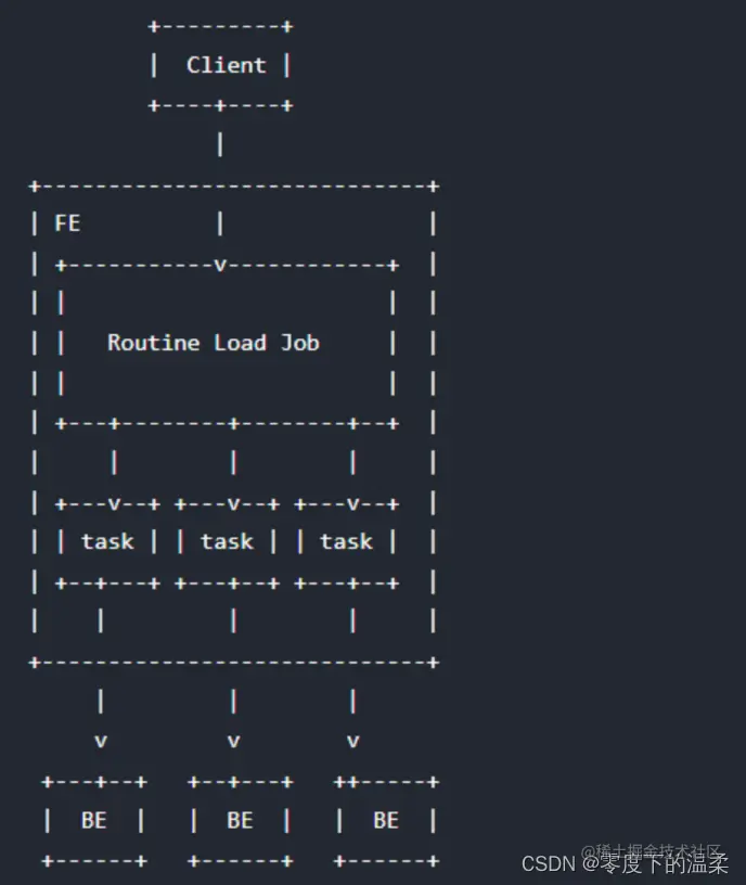- Routine load用户通过 MySQL 协议提交例行导入作业,生成一个常驻线程,不间断的从数据源(如 Kafka)中读取数据并导入到 Doris 中。