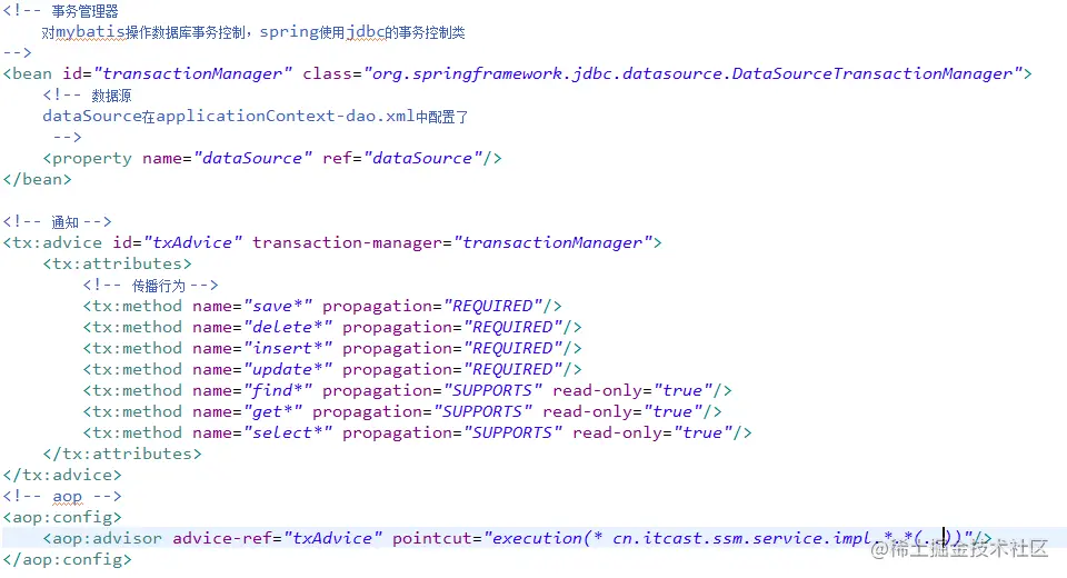 16. 事务控制(applicationContext-transaction.xml) ,在applicationContext-transaction.xml中使用spring声明式事务控制方法。