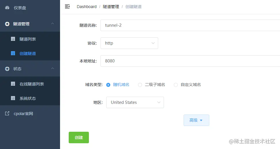 3. 创建隧道将本地端口下的网站发布到互联网