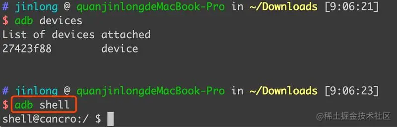 我们通常使用adb devices来查看电脑上连接的Android设备,使用adb shell打开Android设备上的终端来执行各种命令。使用adb logcat来查看Android设备产生的log信息。