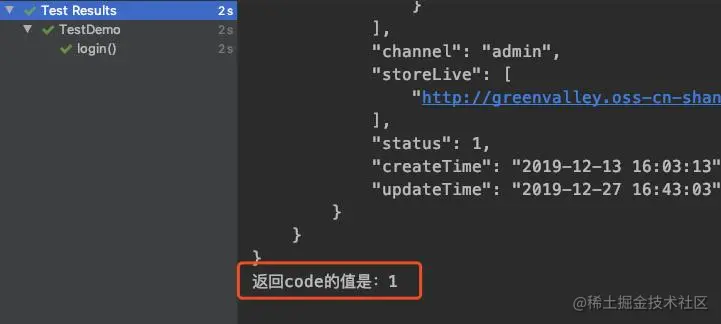 我们可以在 then 后面利用 .extract().body() 来获取我们想要 body 的返回值,它们也可以直接接在断言后面,写法如下:.. .then() .log().all().statusCode(200).body("code",equalTo(1)) .extract().body().path("code");