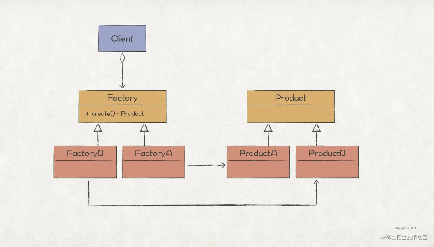 工厂方法模式(Factory Method Pattern)跟上一篇讨论的建造者模式类似,都是将对象创建的逻辑封装起来,为使用者提供一个简单易用的对象创建接口。两者在应用场景上稍有区别,建造者模式常用于需要传递多个参数来进行实例化的场景;工厂方法模式常用于不指定对象具体类型的情况下创建对象的场景。