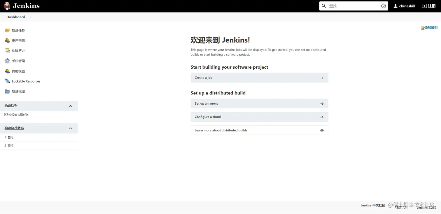 http://IP:8080访问Jenkins,如图所示 -