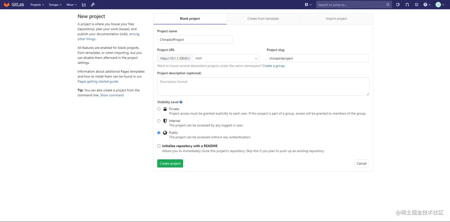4.2在Gitlab创建项目