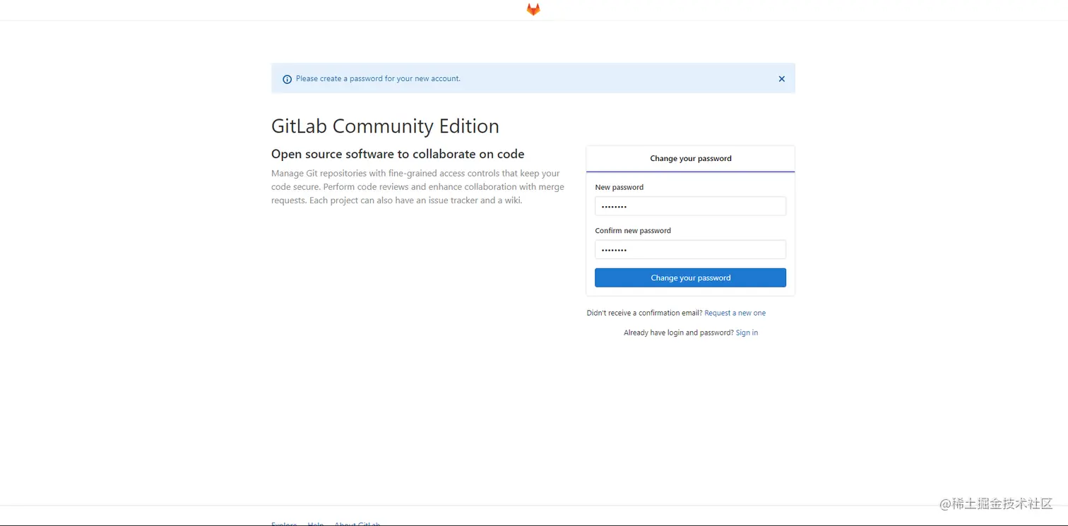 http://IP:81访问Gitlab,并设置root密码:00000000 -