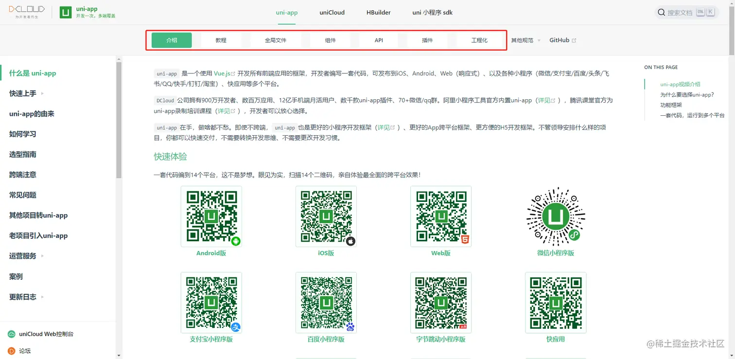 里面有内置组件、接口、扩展组件、常用模板,这些功能覆盖了我们平时大部分的场景,可以扫码体验一下