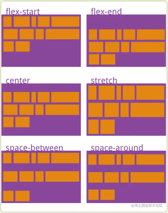 - flex-start(默认值):左对齐
