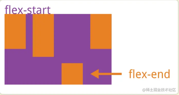 - flex-end:与交叉轴的终点对齐