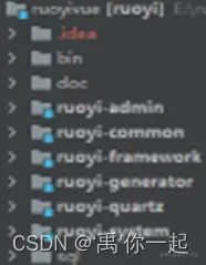 若依框架看似有多个独立的项目,但只有一个入口程序(ruoyi-admin里面RuoYoApplication),入门程序一旦启动,其他项目都会启动起来。