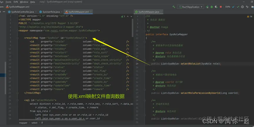 答案:有映射文件,只不过若依框架只需要执行sql语句,在前端就能自动生成bean service mapper以及xml文件,直接下载既可。