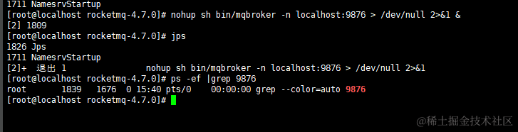 nohup sh bin/mqbroker -n localhost:9876 > /dev/null 2>&1 &