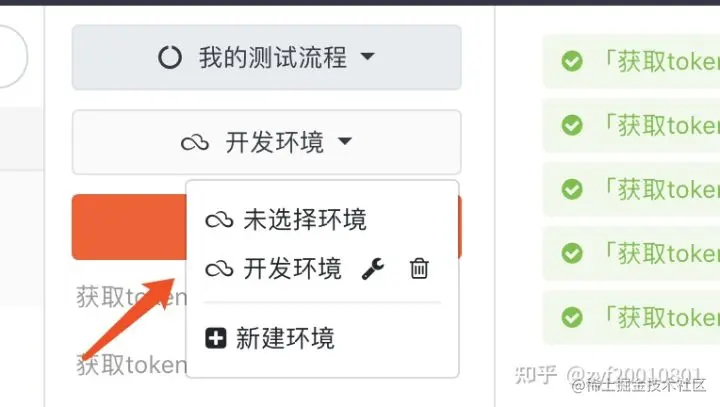 2、流程测试时,可以选择不同的环境进行测试。如图:
