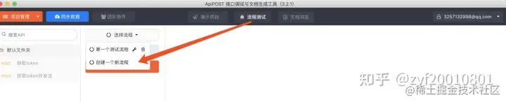 点击ApiPost顶部的【流程测试】,然后创建一个流程