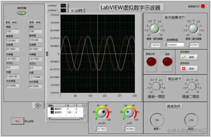 简易版LabVIEW虚拟数字示波器,具备以下功能: