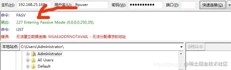 2、ftp登陆报错